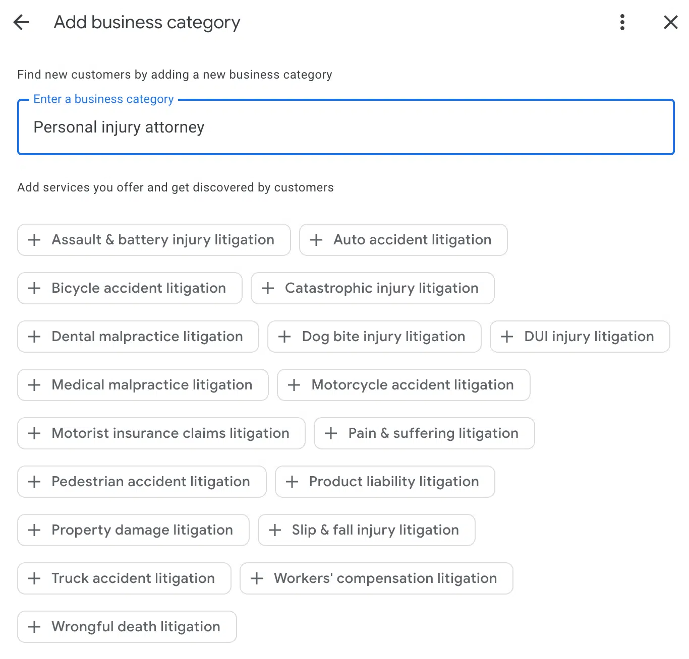 Choosing the wrong primary category for your GBP is a leading reason businesses fail to rank. If you’re a personal injury lawyer, but your primary category is set to “trial attorney,” you’re fighting an uphill battle to rank for those highly competitive terms like “personal injury lawyer” searches.