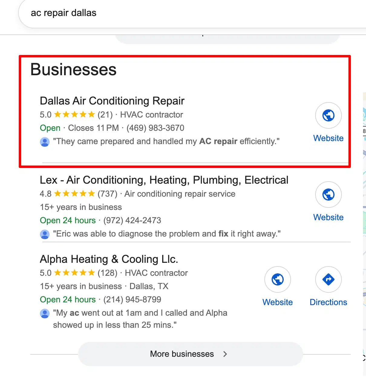 Including keywords in your business name is one of the most powerful local ranking signals. Sometimes a profile will rank in the map pack based solely on its name, beating out businesses with better reviews and higher recency.