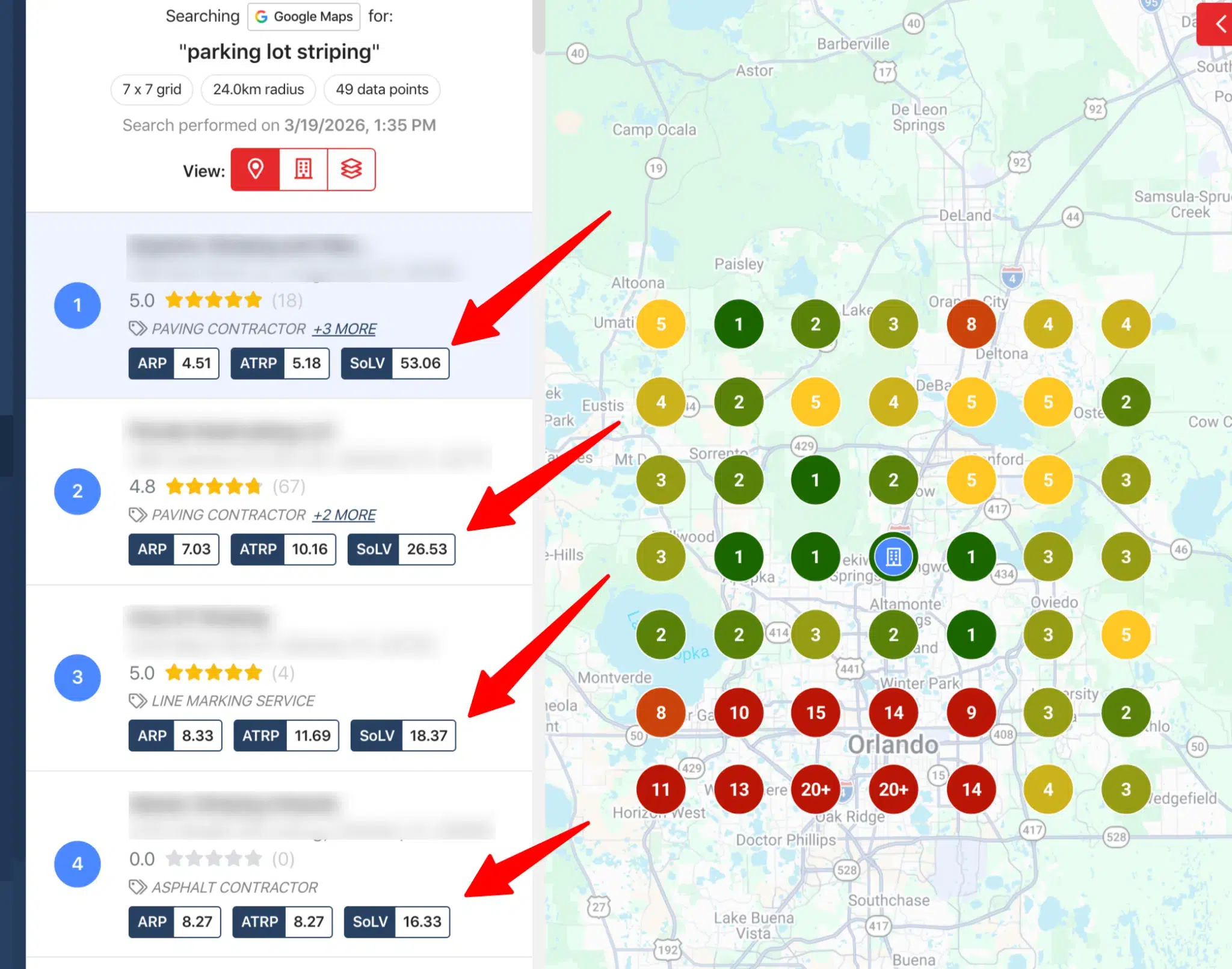 - Run a geo-grid ranking scan: Identify which competitors are outranking you for your top keywords.